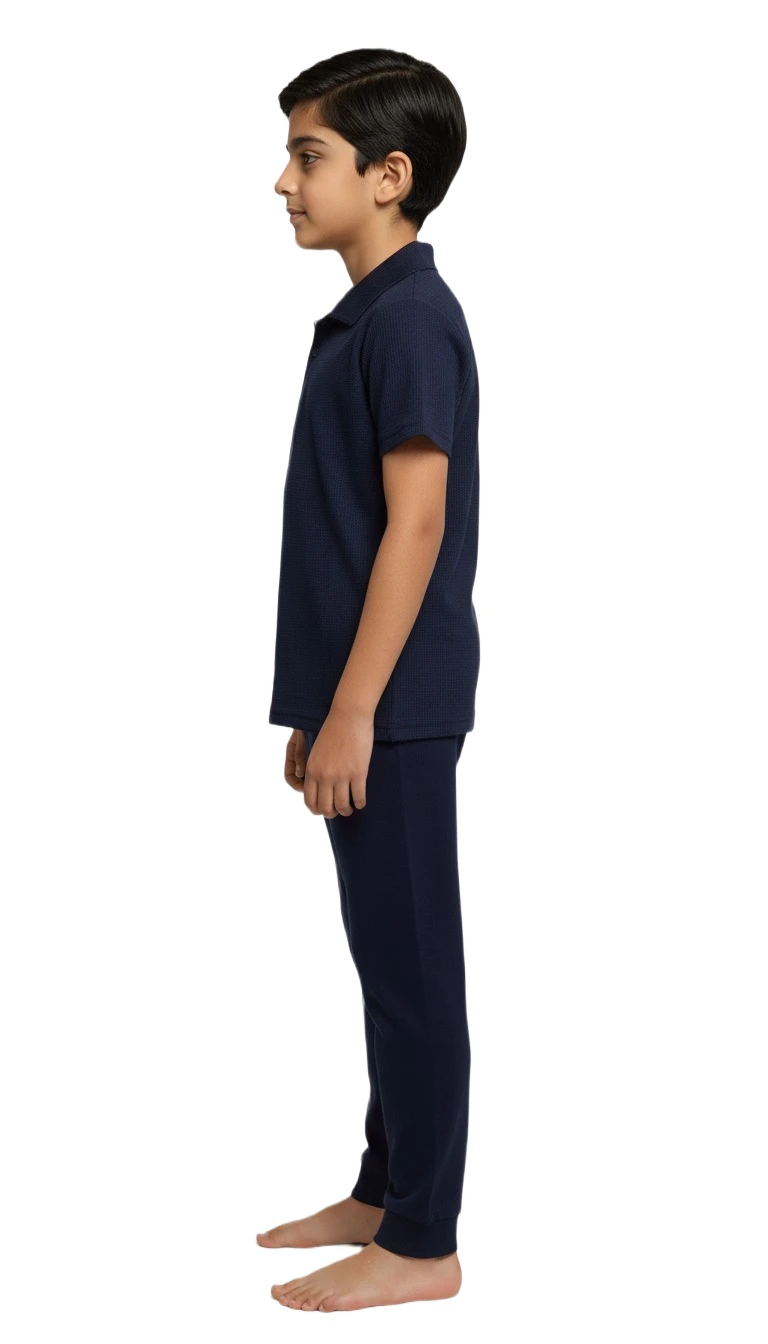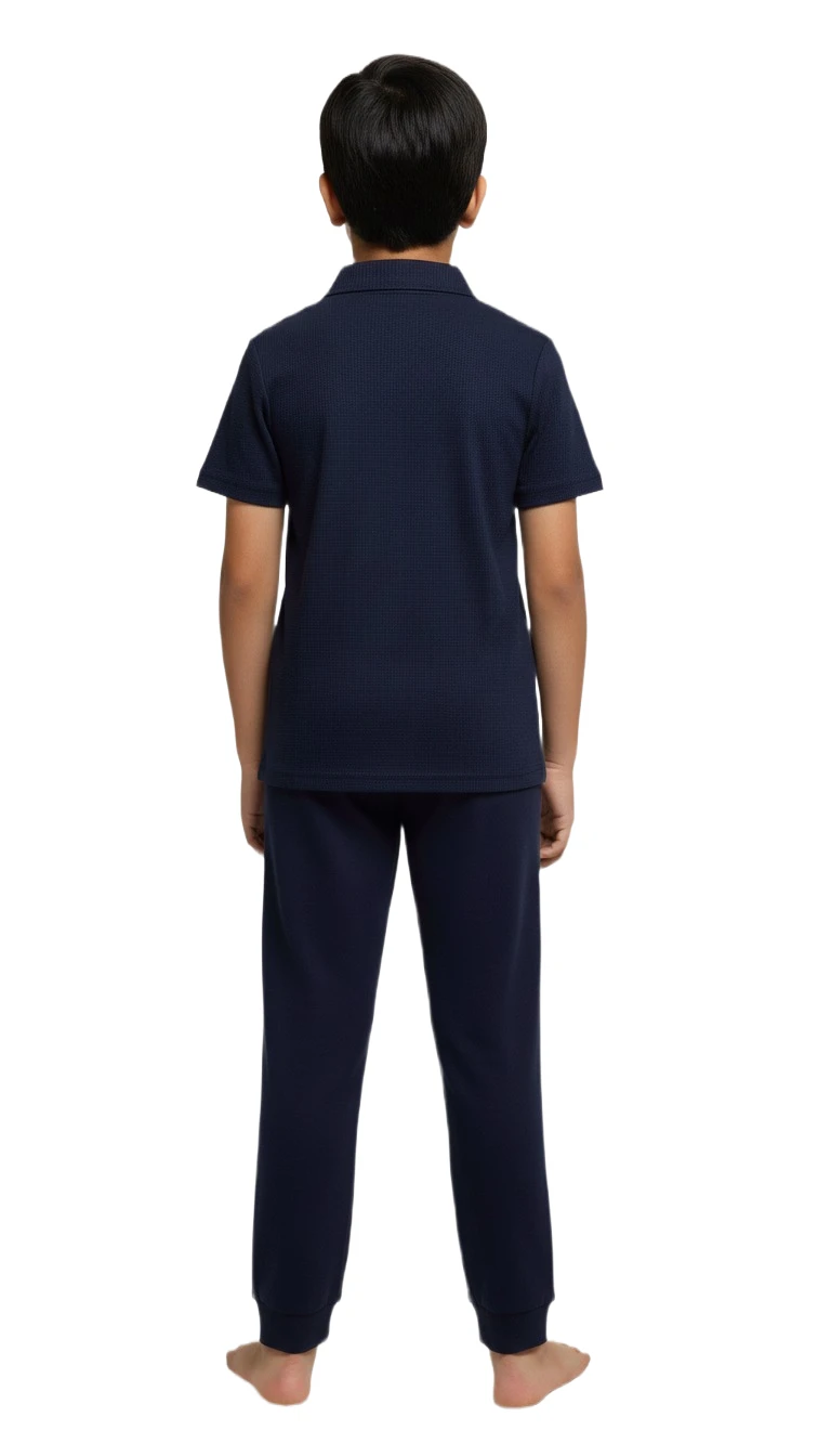 and style with our Boys' Ribbed Knit Gray Polo Pajama Set. This soft and cozy