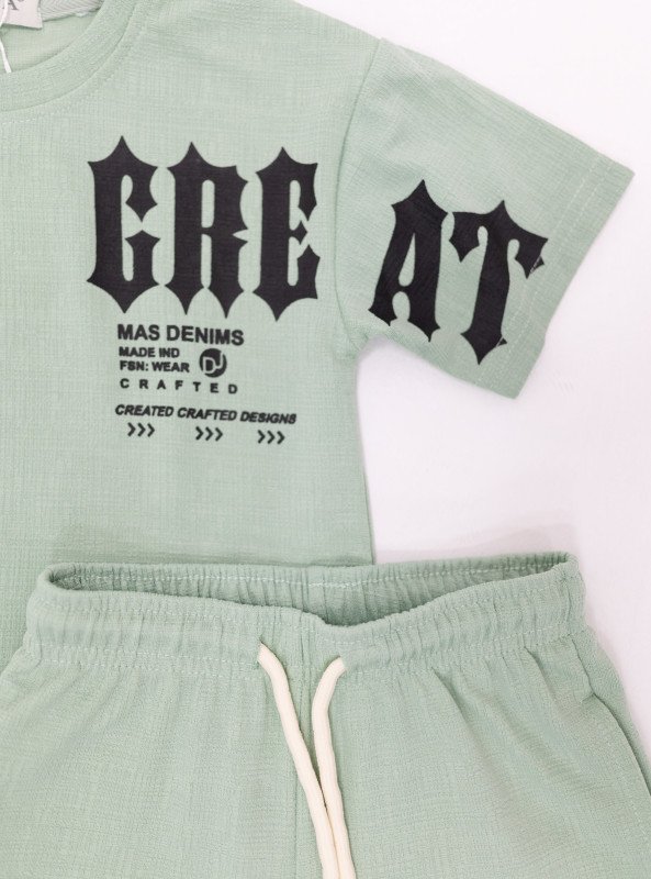 Boys’ Cotton Graphic “GREAT” T-Shirt & Shorts Set