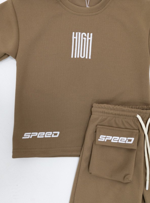 Boys’ “HIGH SPEED” Graphic Cotton Shorts Set - LightBrown
