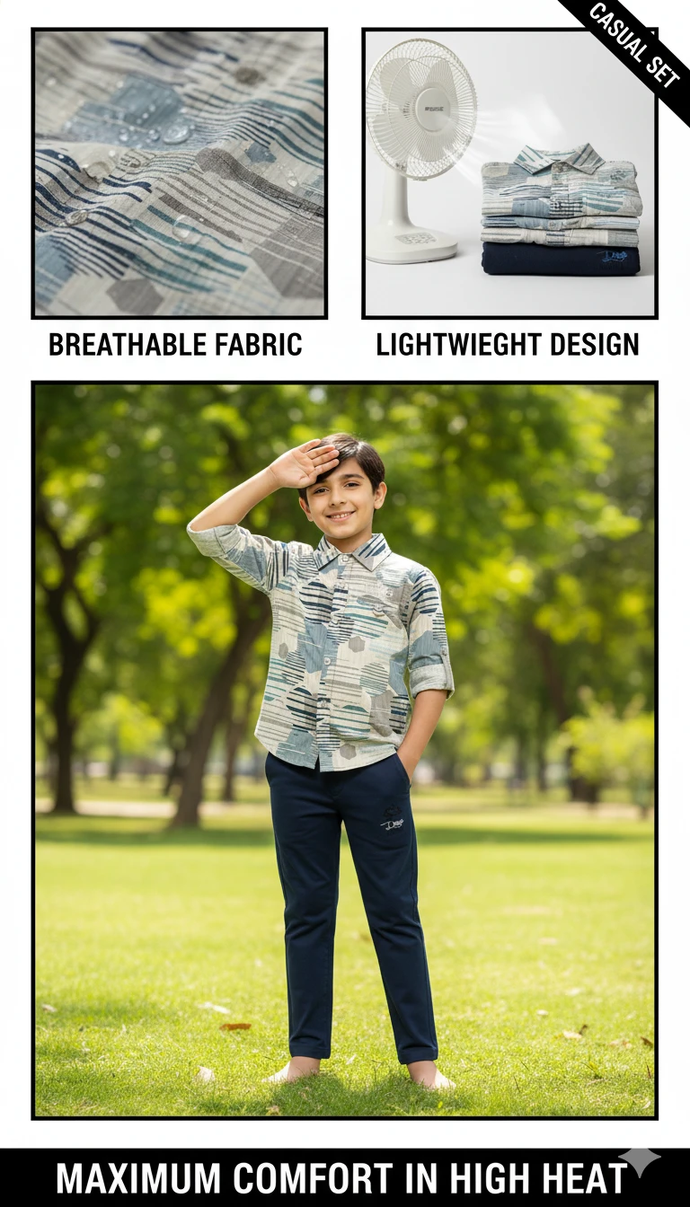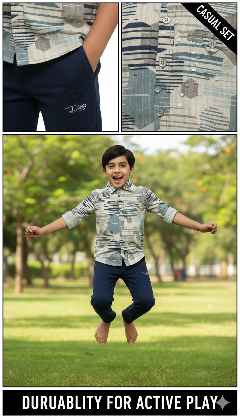 Whether he's exploring the park, attending a family gathering, or enjoying a relaxed day out, the "Desert Sands" set offers a perfect blend of style, comfort, and versatility.