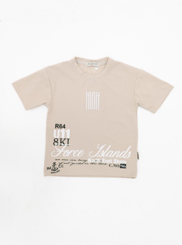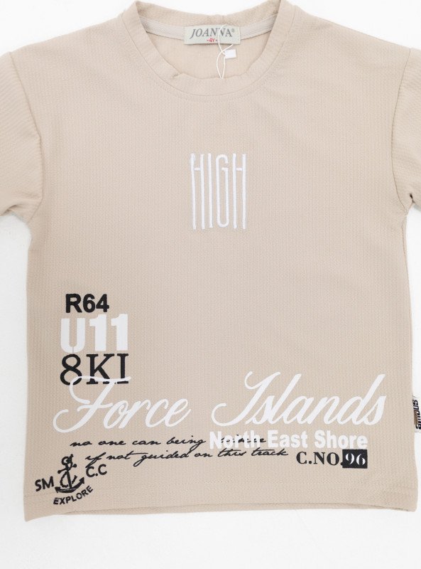 Add a bold edge to your little one's summer style with this eye-catching boys' two-piece set. Featuring a short-sleeved crewneck top and matching shorts, both pieces are printed with modern text graphics for a standout streetwear vibe. Made from a breathable blend of 95% cotton and 5% elastane, this set offers all-day comfort with a slight stretch for active movement. The elasticated waistband and adjustable drawstring on the shorts ensure a snug, flexible fit. Perfect for playdates, outings, or everyday wear.