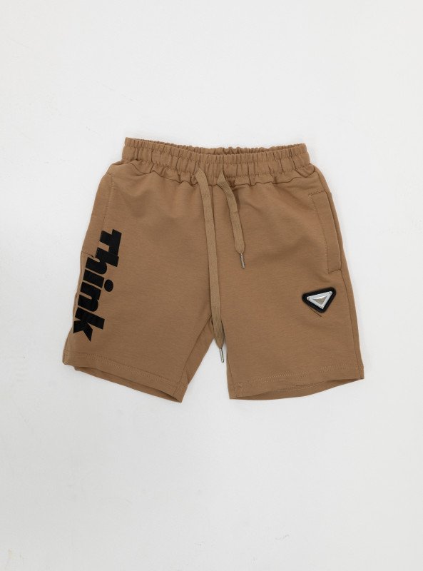 Boys’ Printed Cotton T-Shirt & Shorts Set – “Think” Graphic - LightBrown