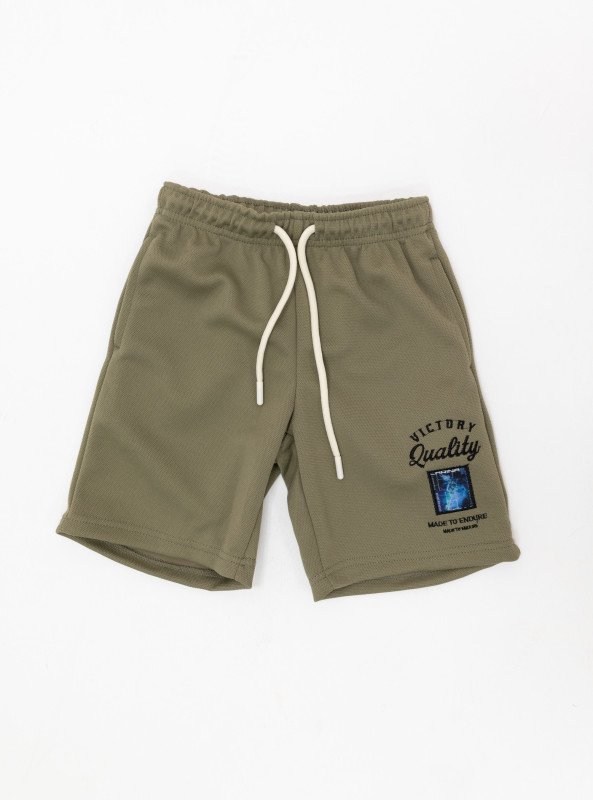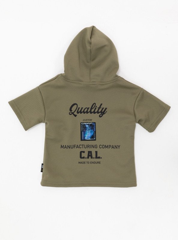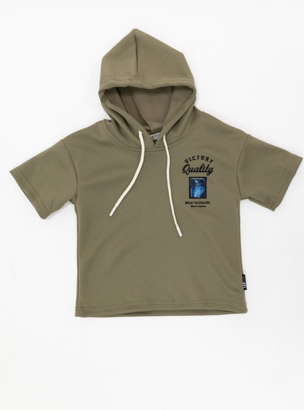 Boys’ Short Sleeve Hooded Set with Graphic Print - DarkOliveGreen