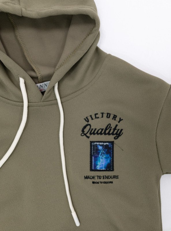 Keep your little one cool and stylish with this versatile hooded two-piece set, perfect for summer adventures or relaxed weekends. Featuring a short-sleeve hoodie and elastic-waist shorts, this set blends comfort with bold, sporty vibes. The standout "Victory Quality" graphic print adds a modern edge, while the breathable cotton blend keeps kids comfortable all day long.