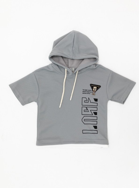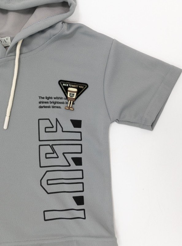 Boys’ Sporty Hooded Set with Bold Graphic Print - LightSlateGray