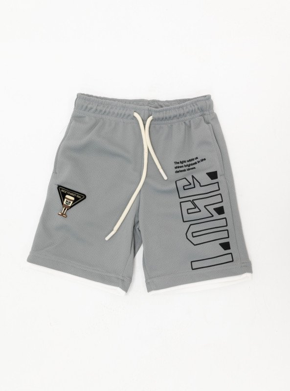 • Matching shorts with bold graphic detail and quote