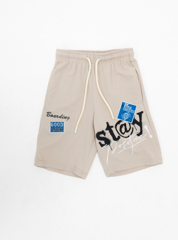 Boys’ “Stay Positive” Graphic Set – T-Shirt & Shorts - Beige