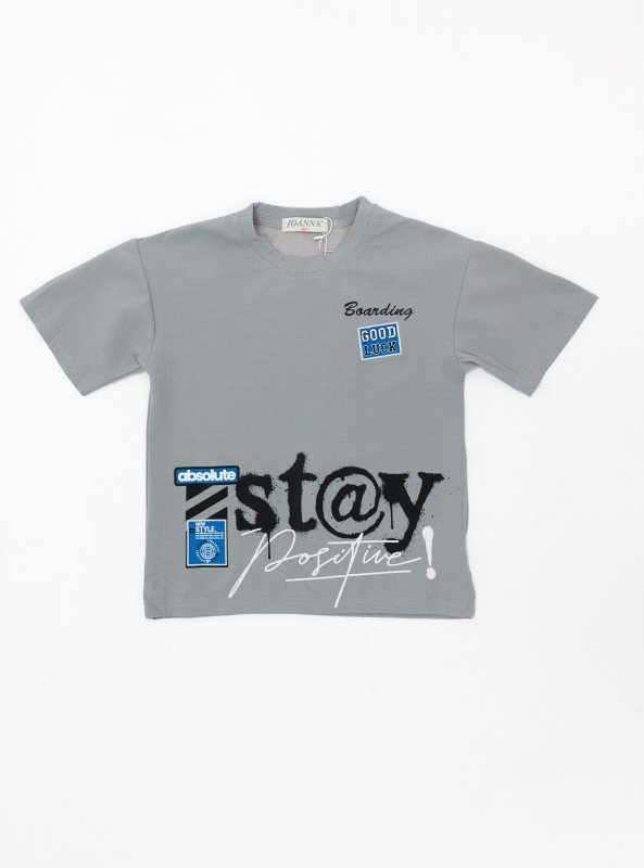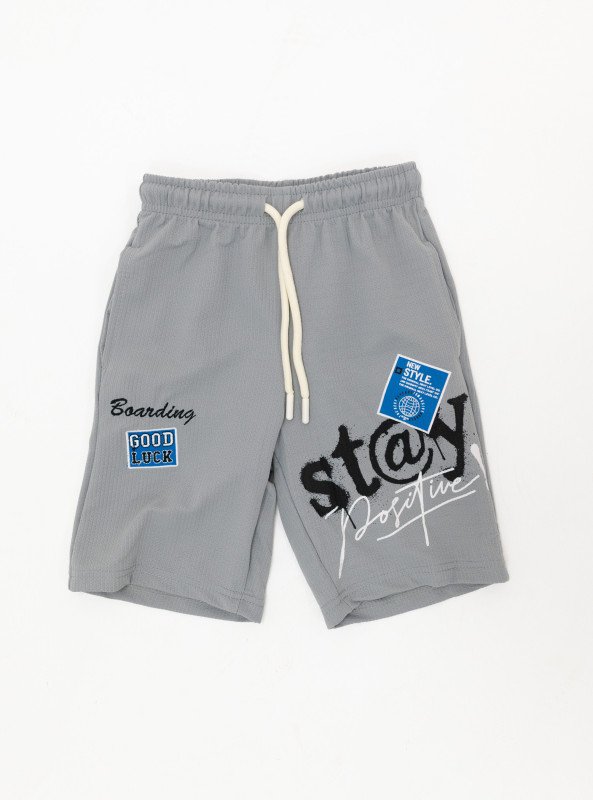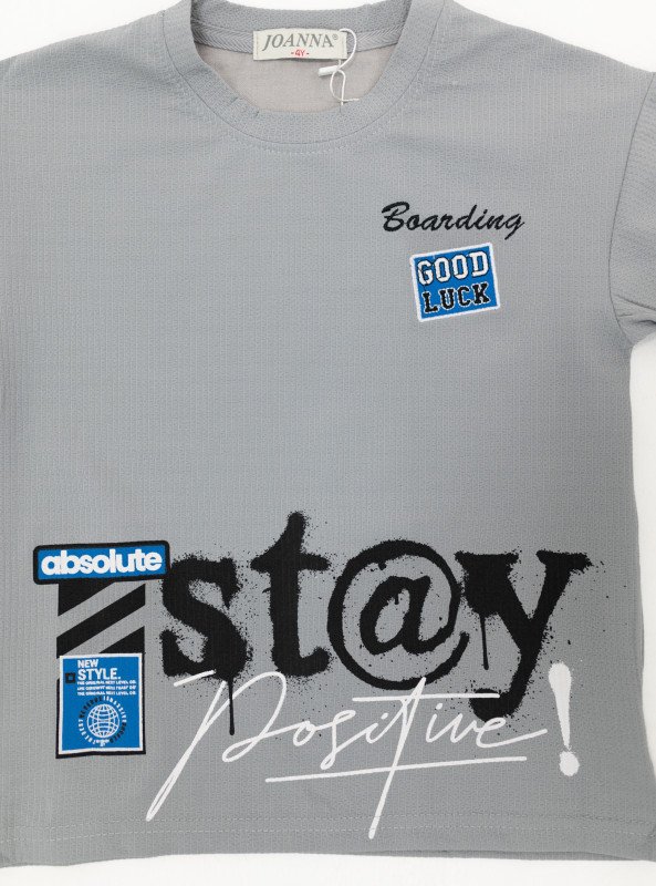 Boys’ “Stay Positive” Graphic Set – T-Shirt & Shorts - Gray