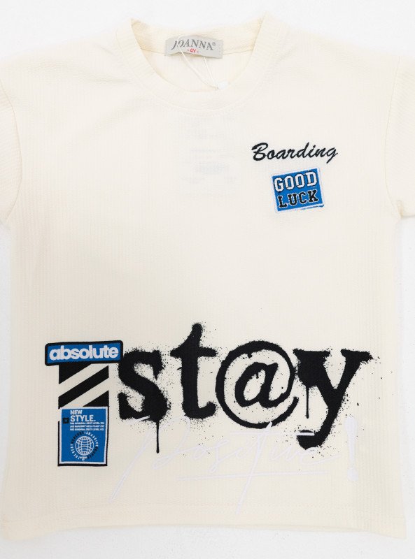 Boost your boy’s confidence and style with this inspiring “Stay Positive” two-piece set. Featuring an eye-catching mix of text prints like “GOOD LUCK,” “absolute style,” and the bold “stay positive” message, this set adds a burst of energy to everyday outfits.