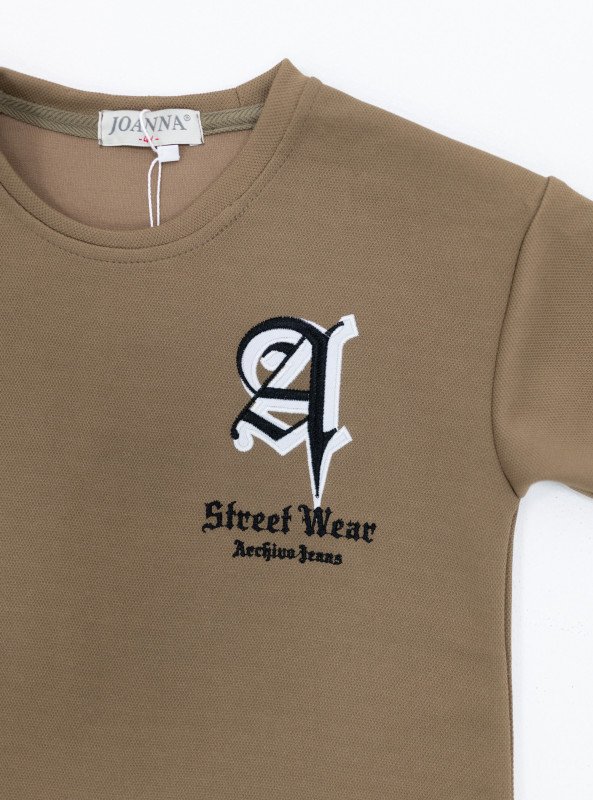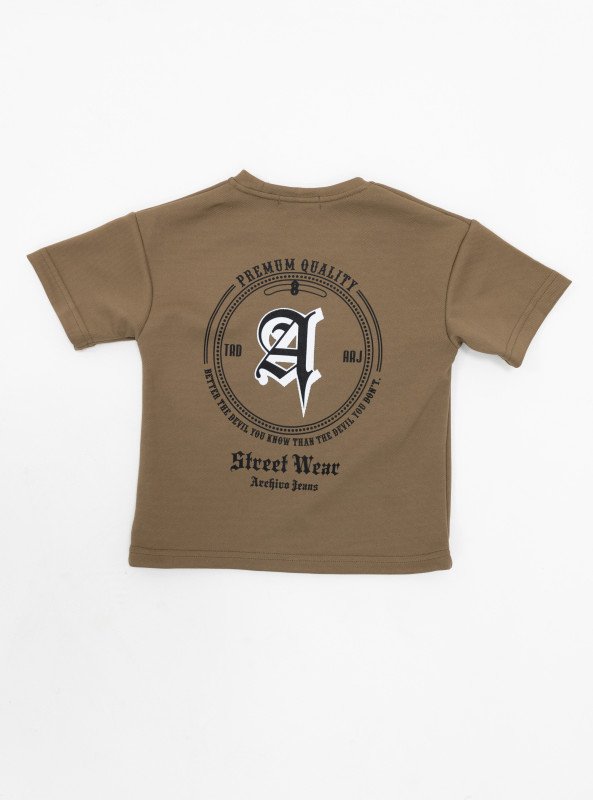 Give your boy a bold streetwear look with this trendy two-piece set designed for comfort and style. Featuring a short-sleeve t-shirt and drawstring shorts, both stamped with a stylish "A Street Wear – Archive Jeans" graphic, this outfit brings city vibes to any casual day.