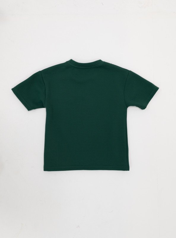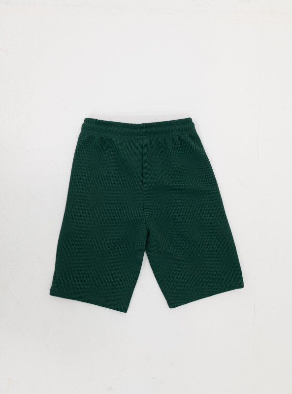Designed in a lightweight waffle-textured fabric, the set includes a short-sleeved crew neck top and relaxed fit shorts with an adjustable drawstring waist. Eye-catching details like the triangle logo patch and branded hem label add a sporty, modern edge. Whether it's a day out, playtime, or lounging at home, this set delivers effortless style.