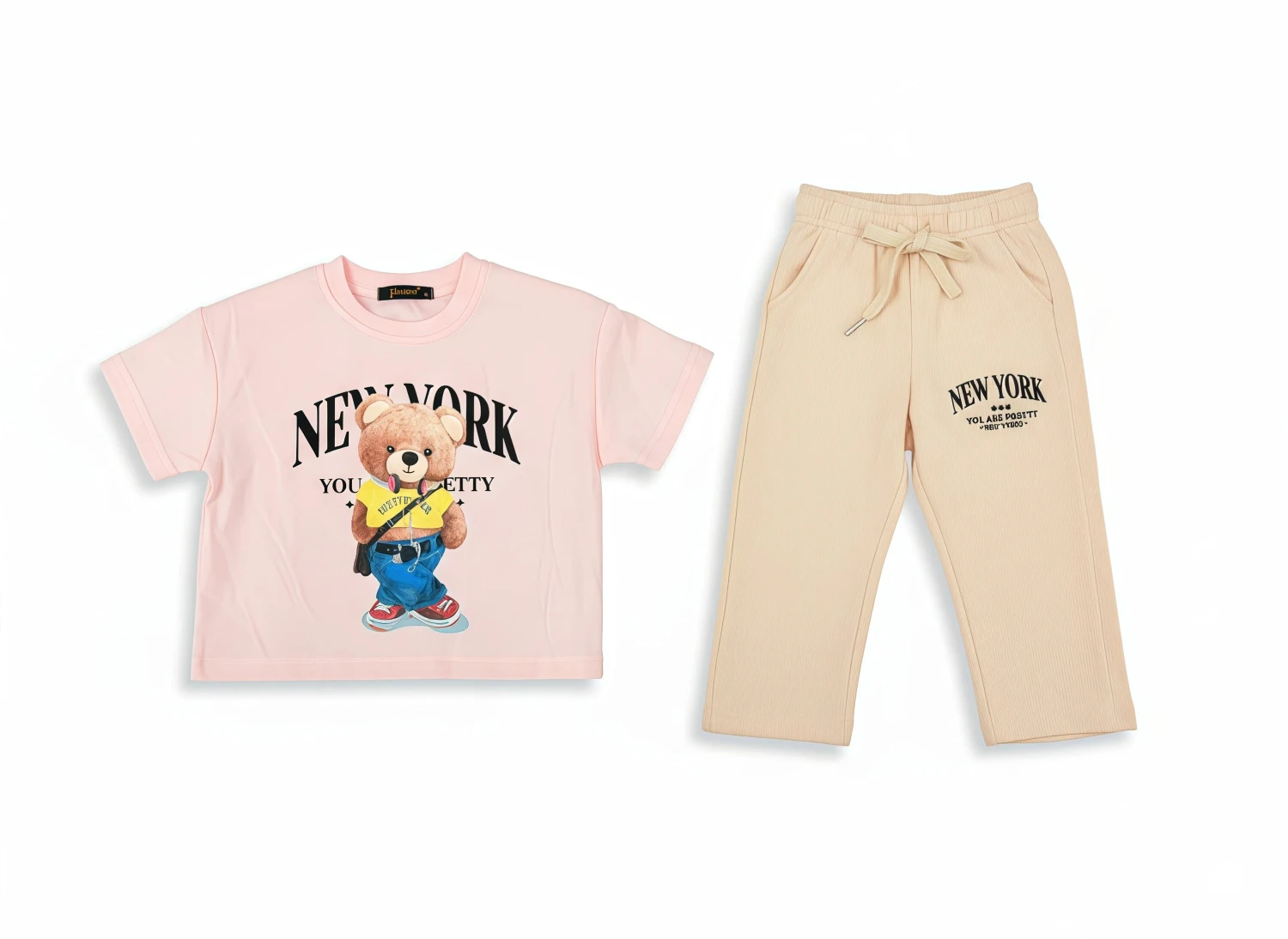 • Trendy "New York" Lettering: Featured on both the top and joggers.