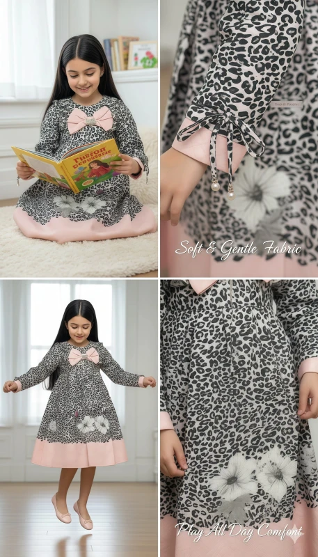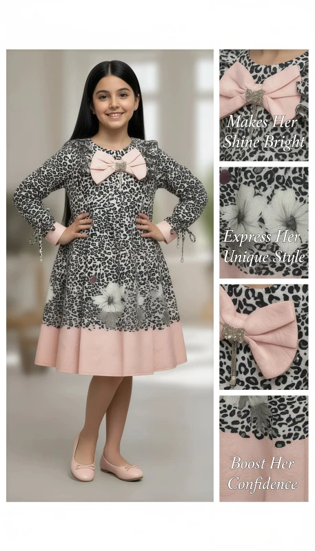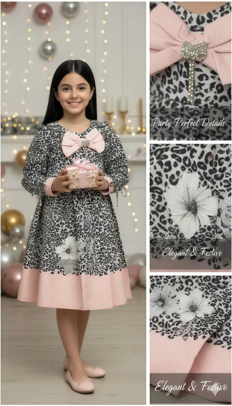 black and white leopard print, beautifully contrasted with a soft pink pleated