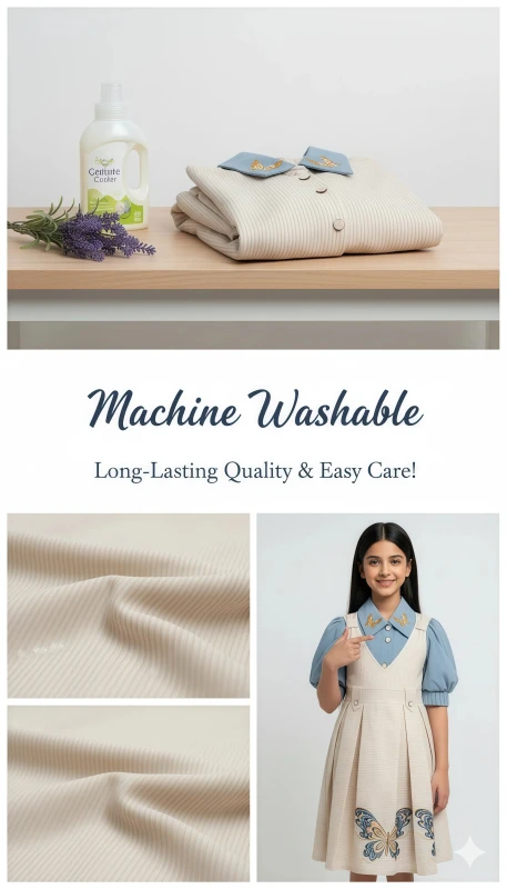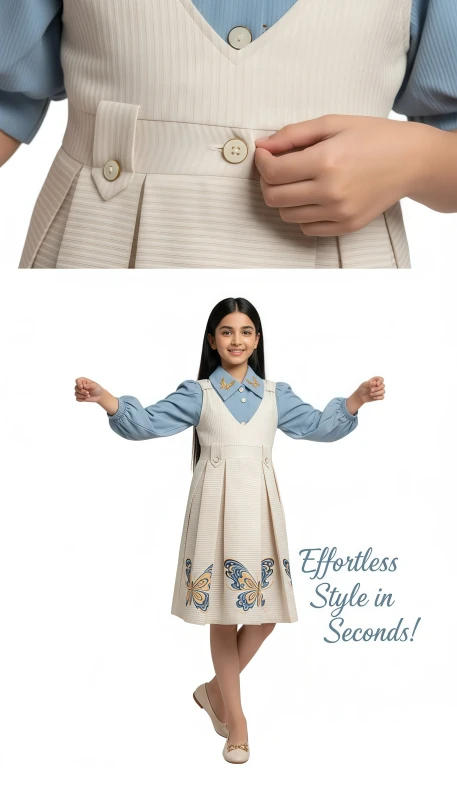 elegance. The matching cream-colored pinafore dress is designed with smart