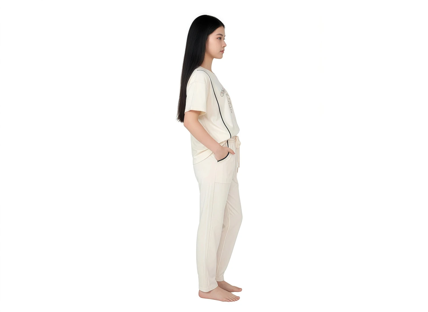 • Stylish black piping accents on the top and pocket trim on pants