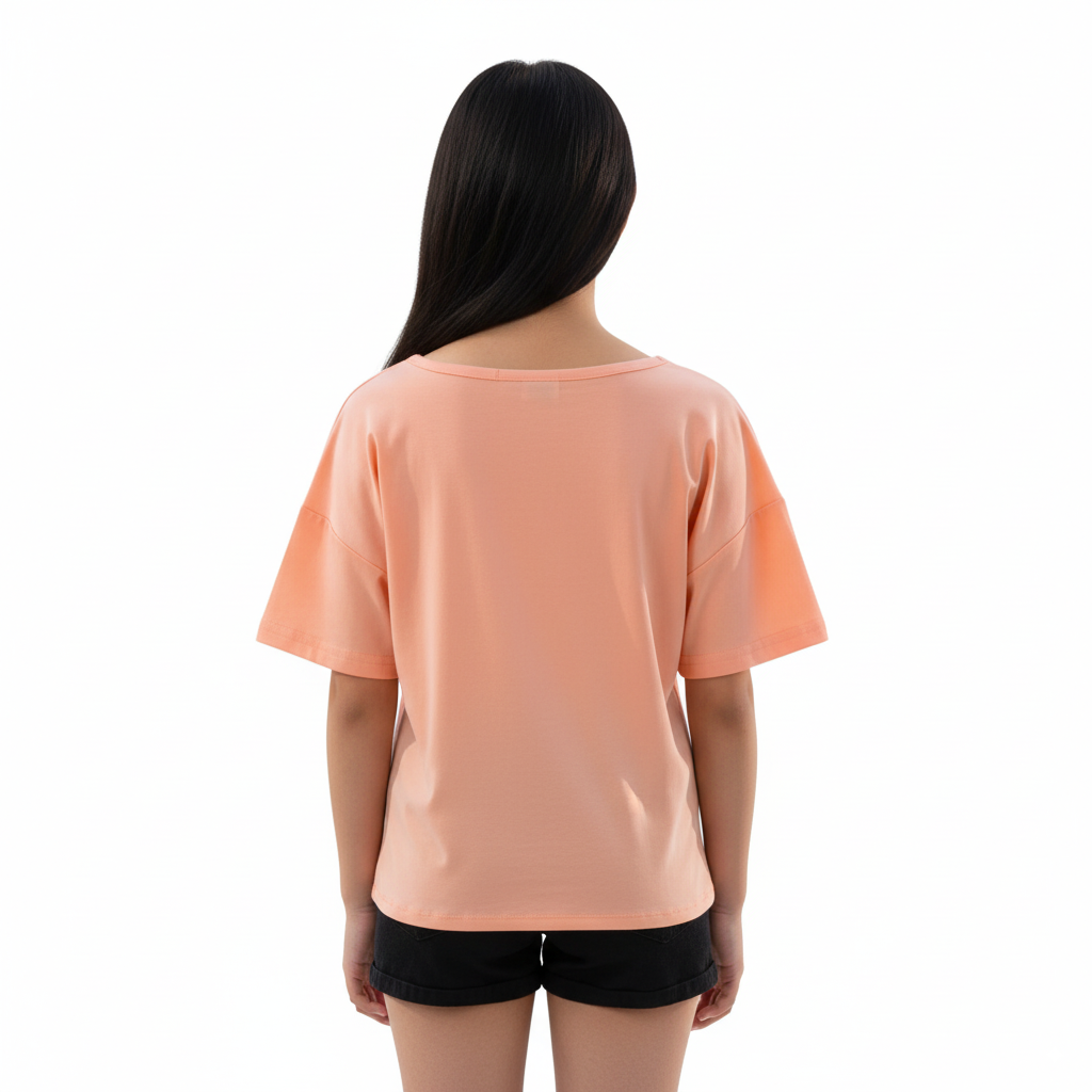 girls' T-shirts. The round neckline is simple and generous, showing an elegant