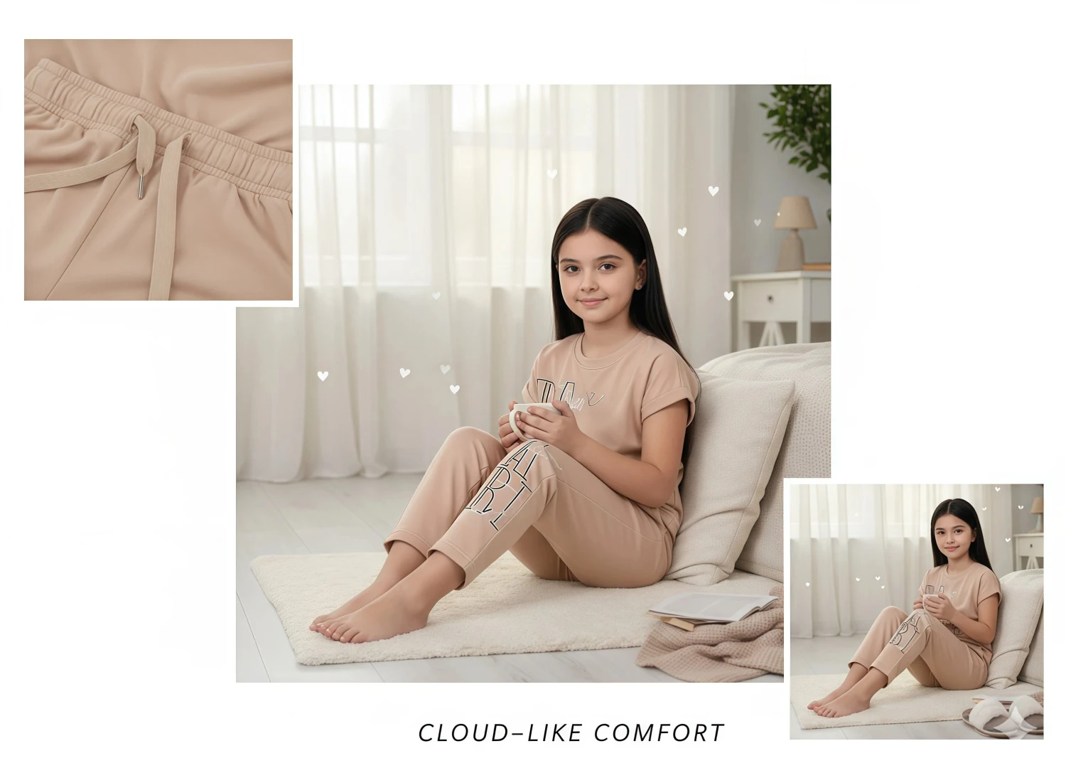 • Material/Comfort: Soft fabric, breathable, comfortable fit, relaxed fit, cozy set.
