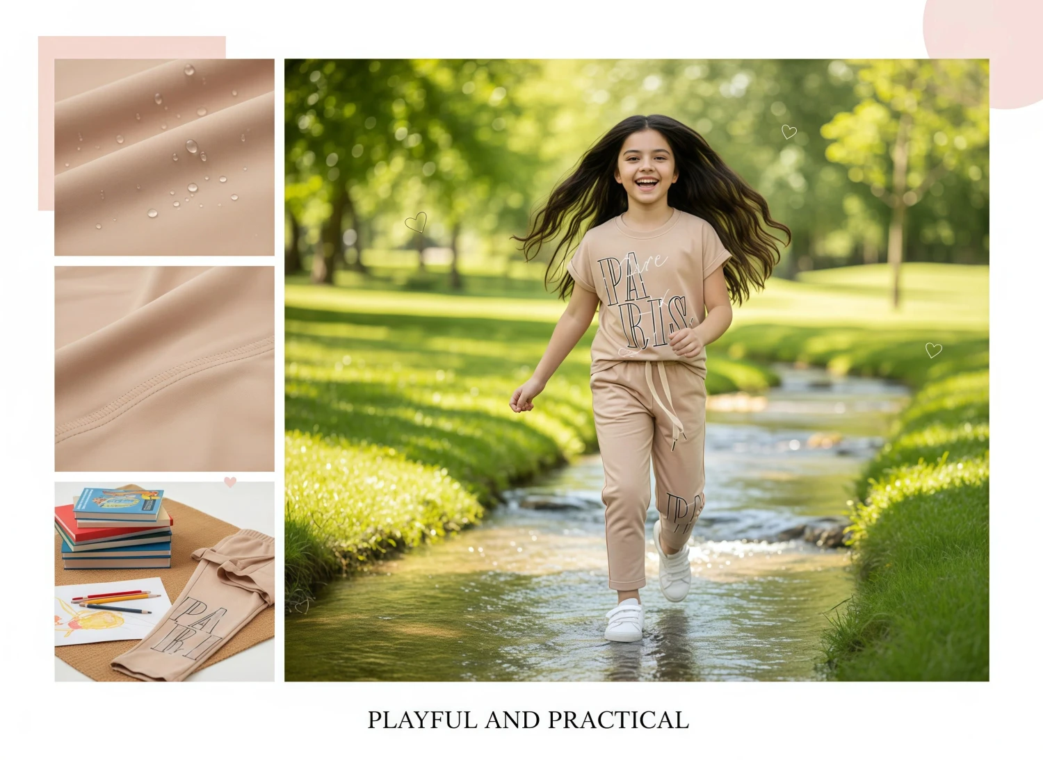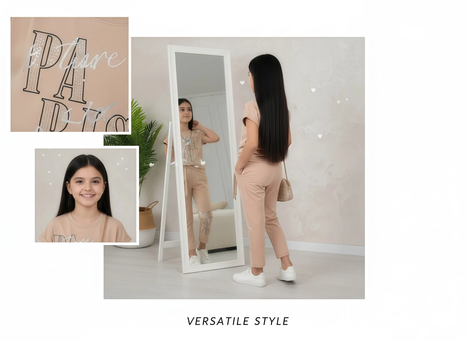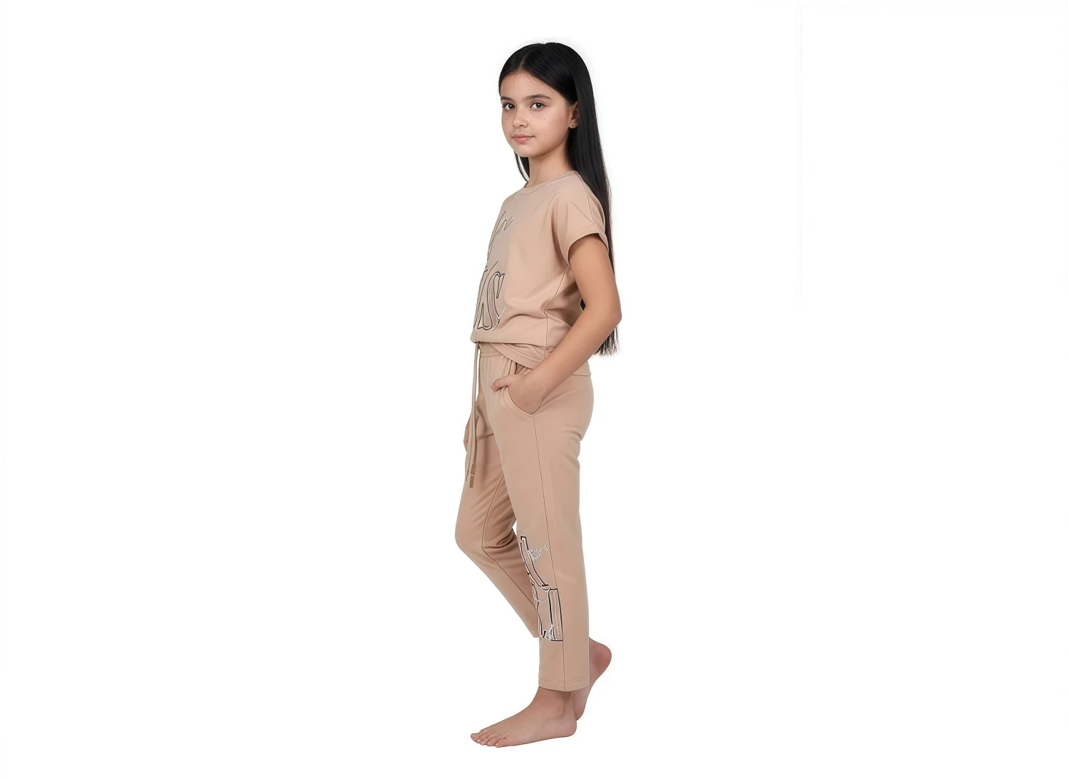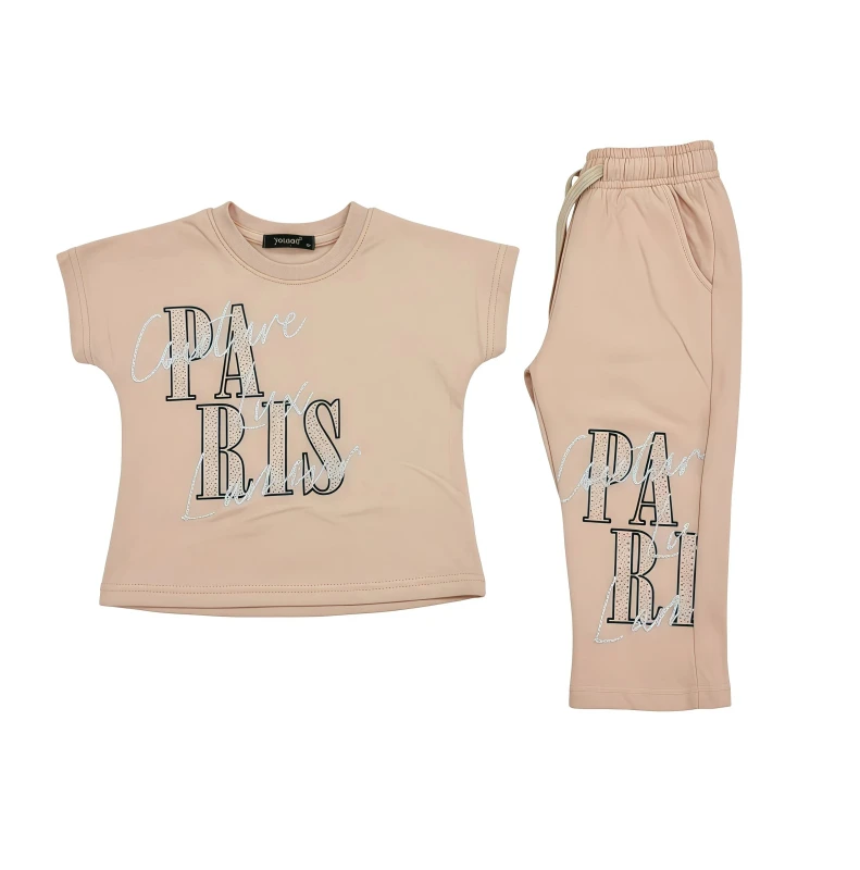 • General: Girls loungewear, kids casual set, two-piece outfit, children's fashion, comfy wear, stylish kids, girls clothing set, coordinated outfit, youth apparel, everyday wear.