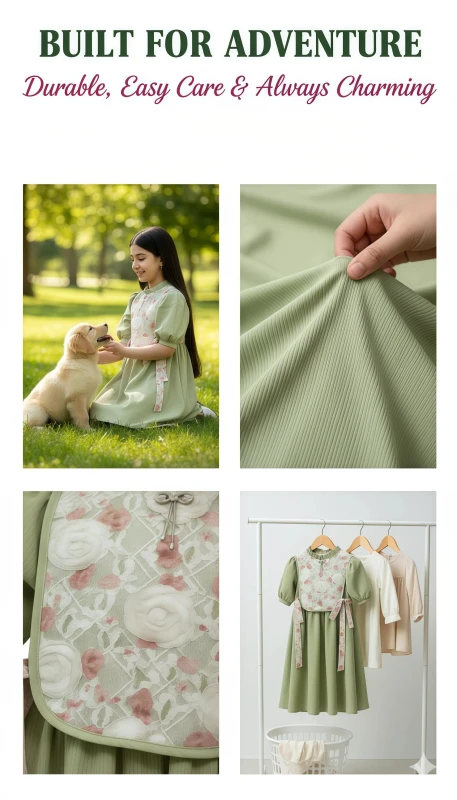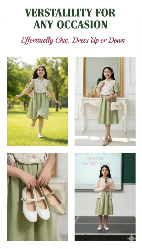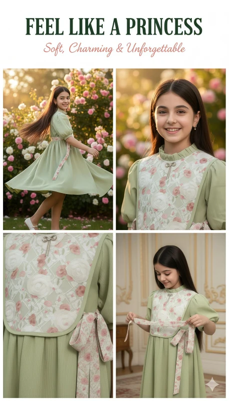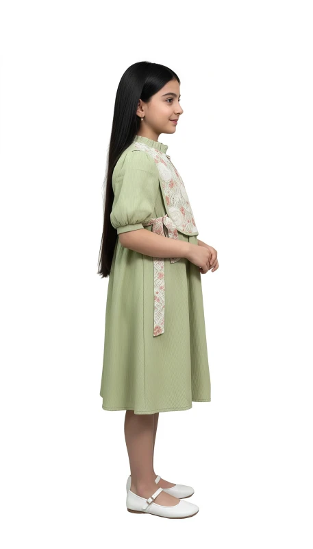 Girl's Graceful Bloom Casual Dress - Green