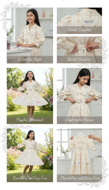 ·         Chic Design: Trench-style collar with double-breasted button detailing for a sophisticated look.