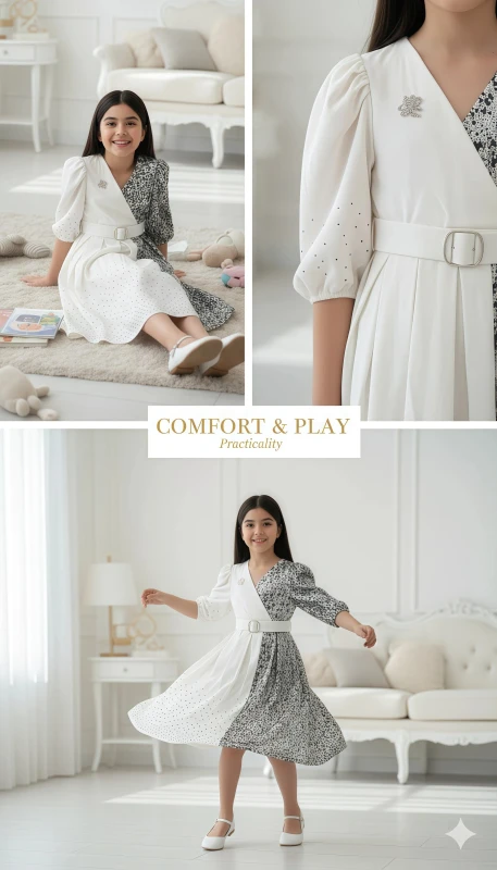 sophisticated yet playful look perfect for special occasions. The V-neckline