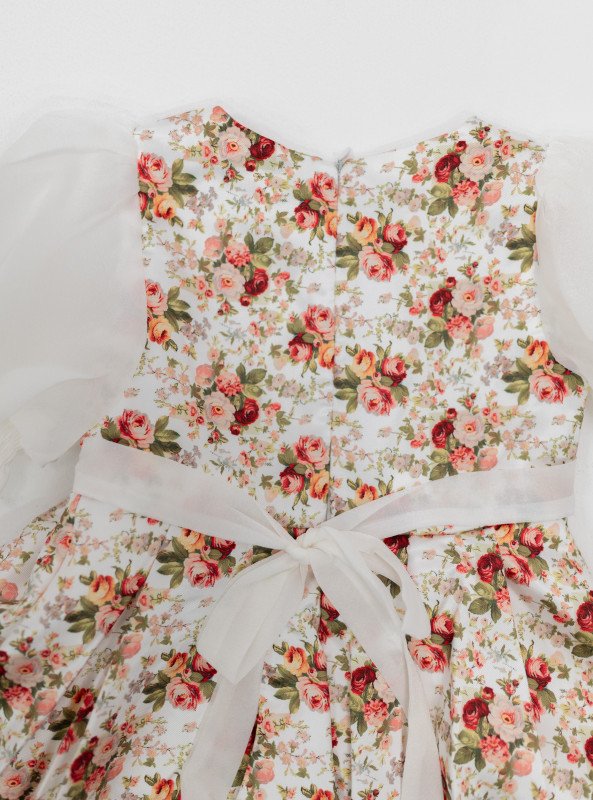 Girls’ Vintage Floral Puff Sleeve Dress with Lace Trim