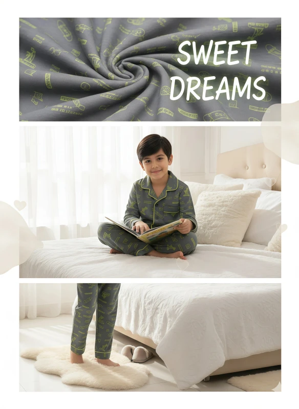 Age/Gender (if applicable, though gender-neutral based on images): Boy's pajamas, kids sleepwear, toddler pajamas (if sizing allows), youth pajamas.