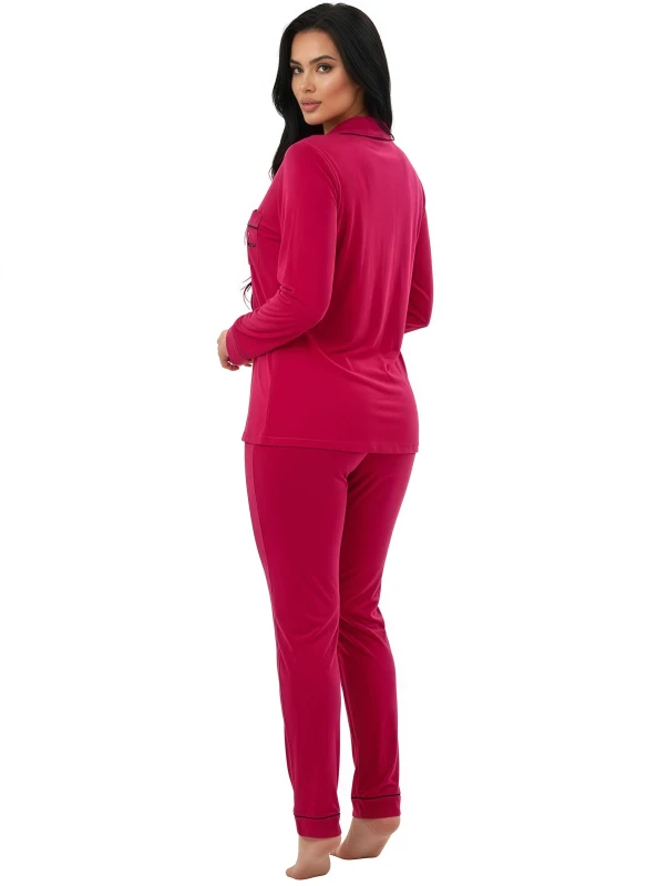 • V-Neck Collared Top: Features a stylish V-neckline with a classic pajama collar and button-front closure.