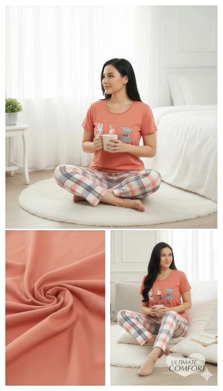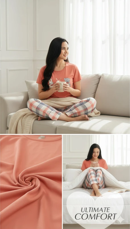 breathable, soft fabric, this pajama set promises comfort and a touch of