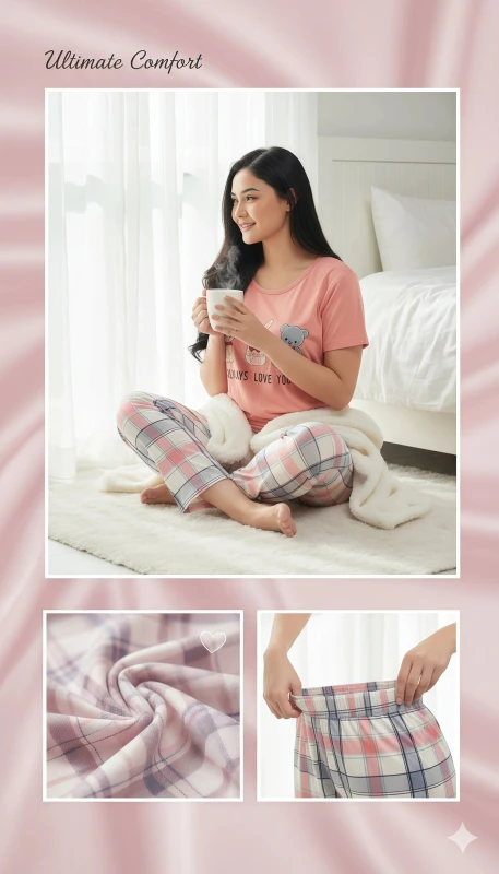 ·         Classic Plaid Bottoms: Full-length pajama pants featuring a timeless plaid pattern