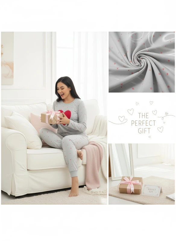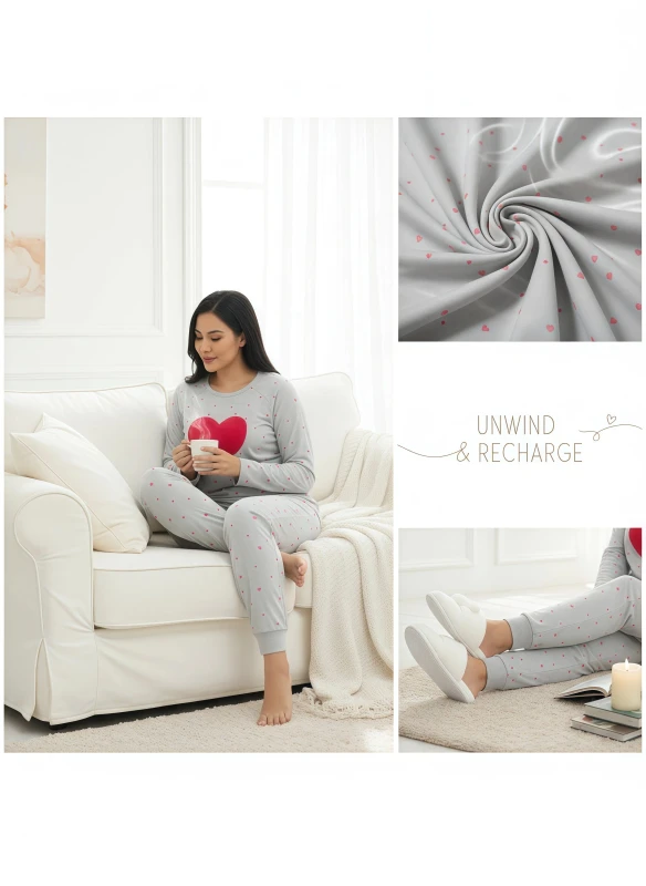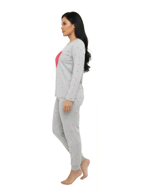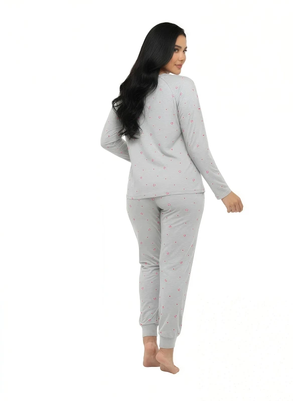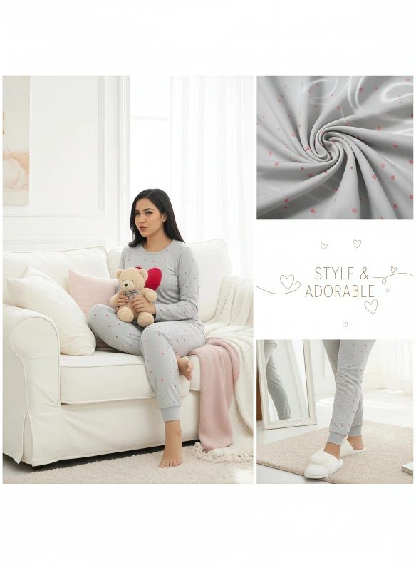 This pajama set is not only comfortable but also aesthetically pleasing, combining a cheerful color palette with delightful heart motifs. It's an ideal choice for anyone looking to add a touch of warmth, comfort, and cuteness to their sleepwear collection.