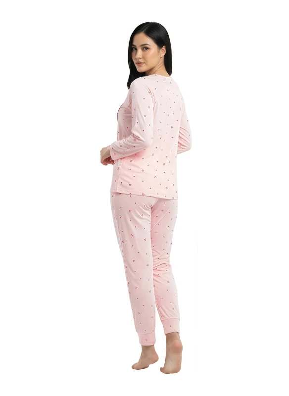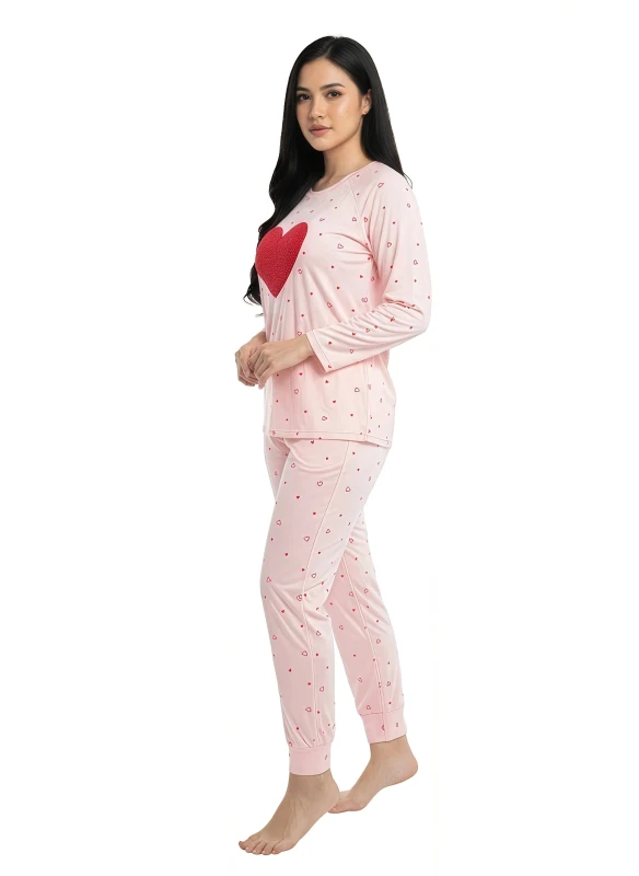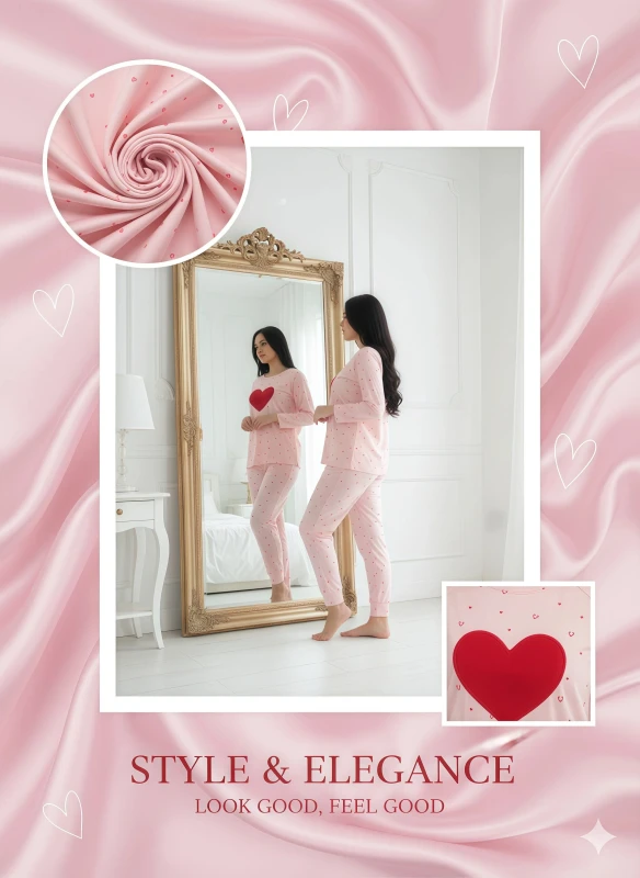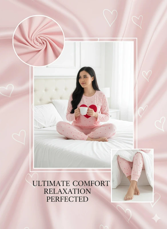 This pajama set is not only comfortable but also aesthetically pleasing, combining a cheerful color palette with delightful heart motifs. It's an ideal choice for anyone looking to add a touch of warmth, comfort, and cuteness to their sleepwear collection.
