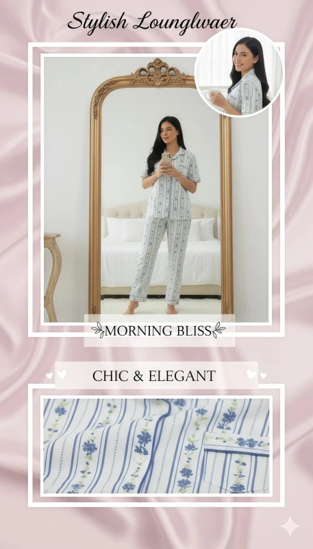 adorned with an elegant vertical stripe pattern in soothing blue and white.