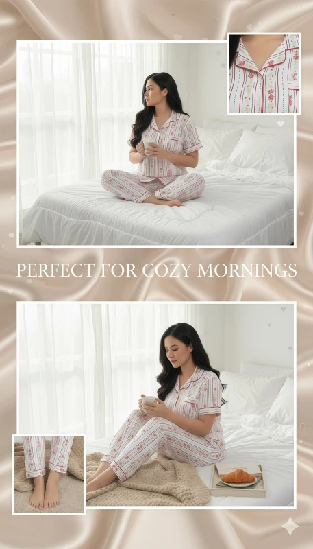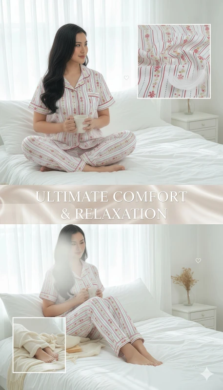 ·         Coordinated Design: Matching full-length pajama pants with the same floral stripe pattern.