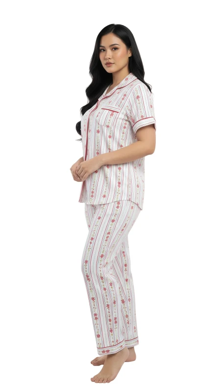 ·         Two-Piece Set: Includes one short-sleeved top and one pair of long pajama pants.
