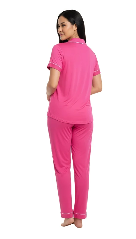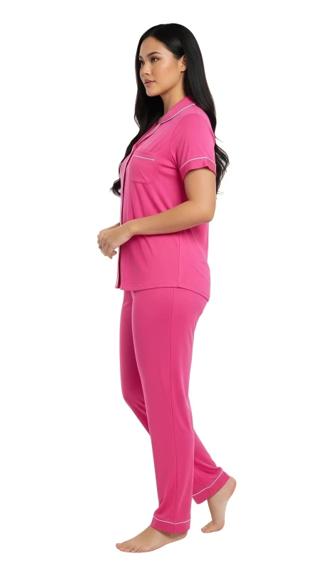 Women's Classic Piped Pajama Set - DeepPink