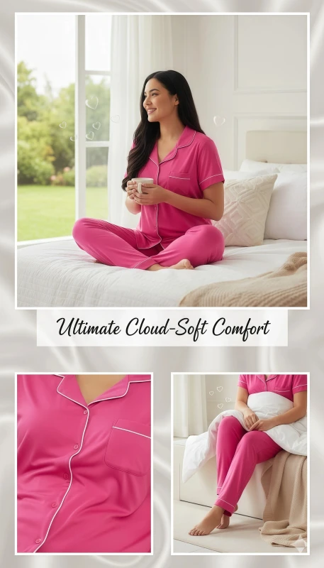 ·         Material (assuming typical): Modal pajamas, rayon pajamas, jersey pajamas, knit pajamas, breathable fabric pajamas.