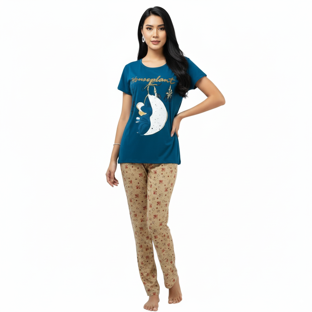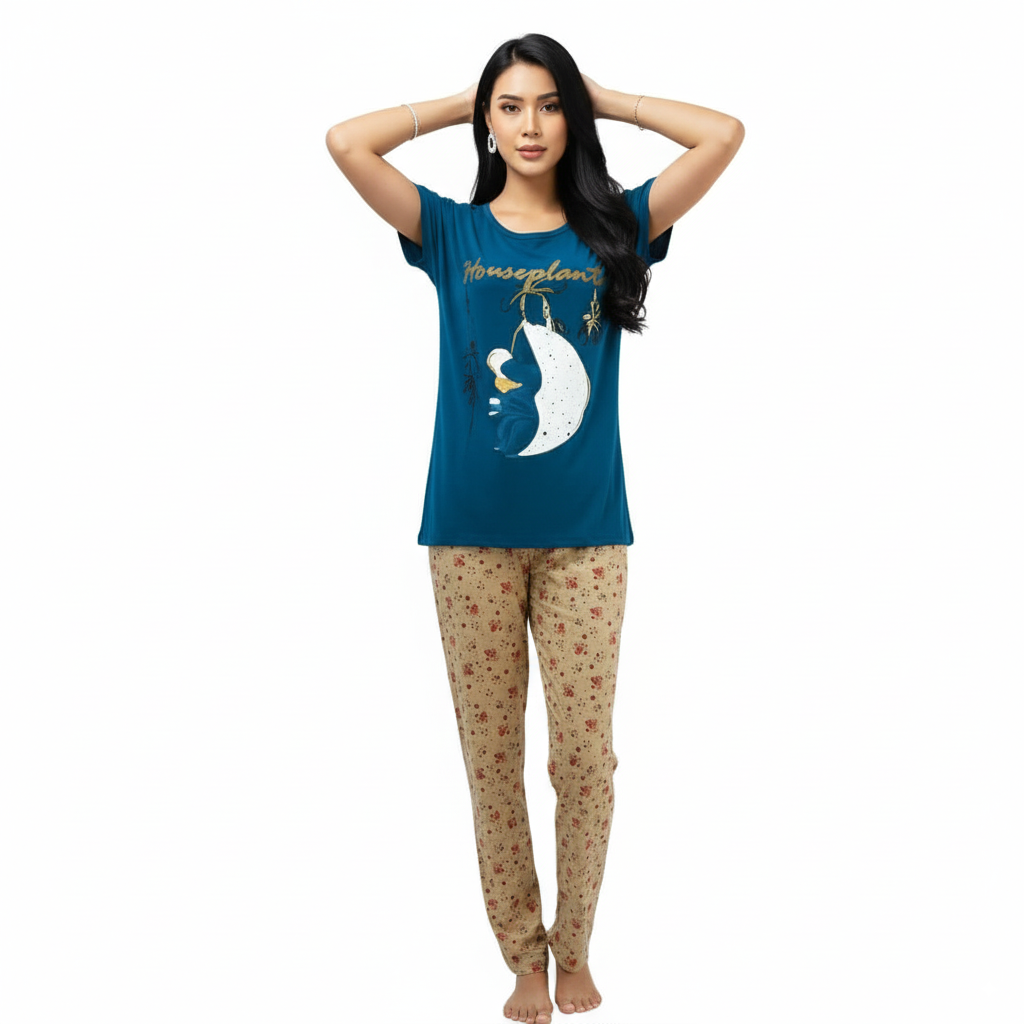 Women’s Cotton Printed Sleepwear Set – Koala “Houseplant” Design