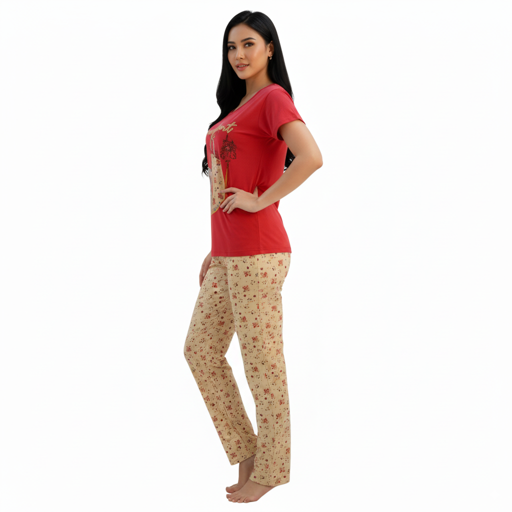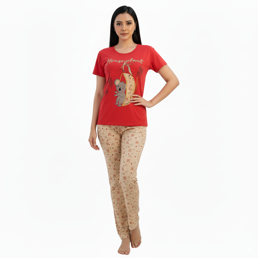 Women’s Cotton Printed Sleepwear Set – Koala “Houseplant” Design