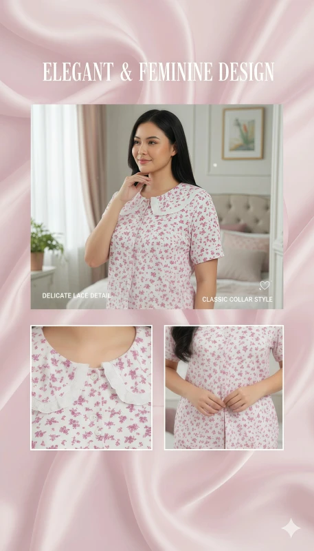 delicate lace trim, adding a touch of feminine charm, and a button-front