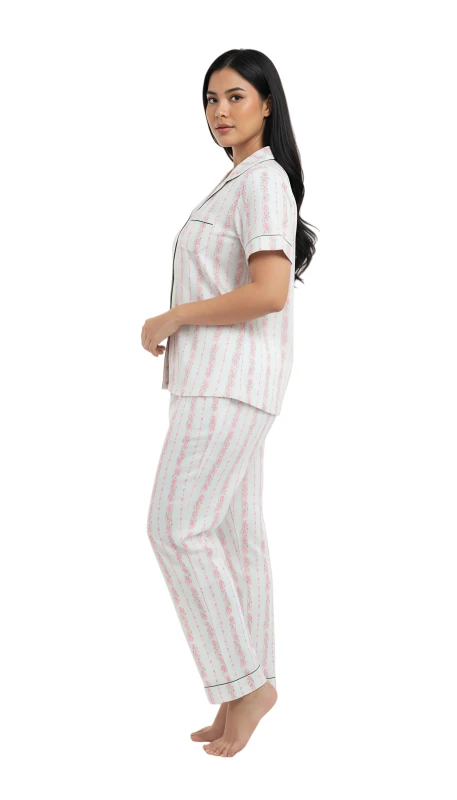 charming two-piece sleepwear is designed for blissful relaxation, featuring a