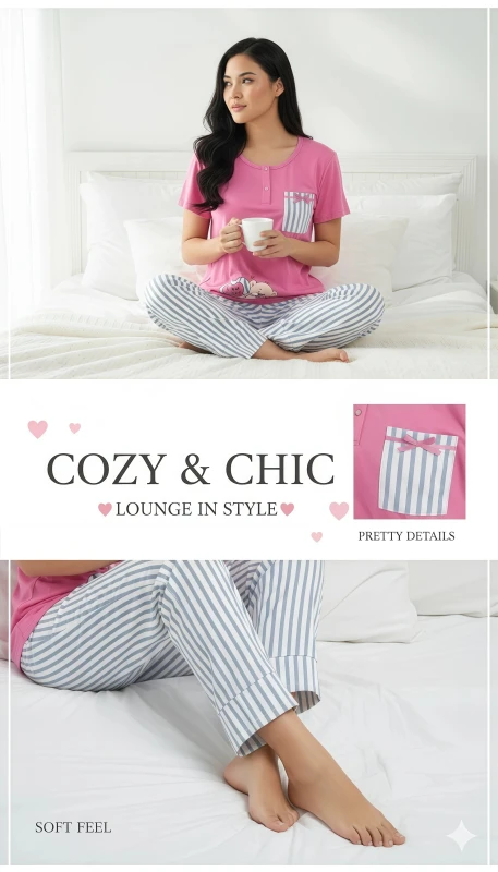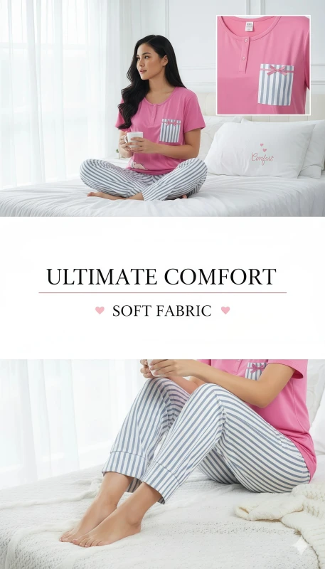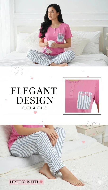 ·         Two-Piece Set: Includes a short-sleeved top and matching pajama pants.