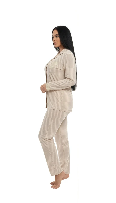 Indulge in ultimate comfort and charming style with this delightful women's pajama set, meticulously designed for restful nights and leisurely mornings. The set showcases a beautiful combination of soft pink and pristine white, rendered in an elegant striped pattern that exudes a gentle, feminine appeal.