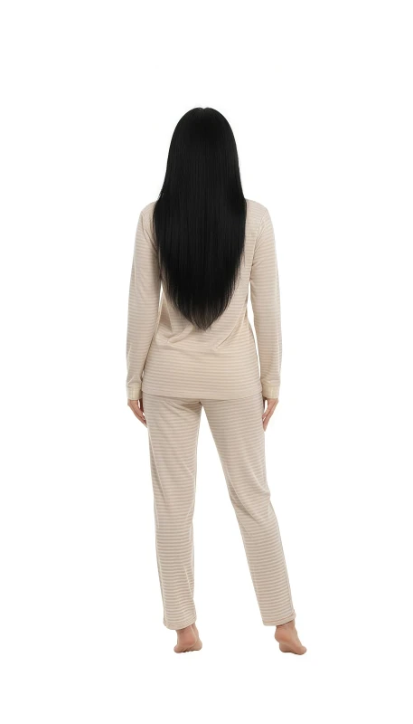 Crafted from a soft, breathable, and skin-friendly fabric, this pajama set promises a gentle touch against your skin, providing an ideal environment for a peaceful night's sleep. The material is chosen for its ability to offer warmth without overheating, making it suitable for various seasons. Easy to care for and durable, this set is designed to be a long-lasting favorite in your sleepwear collection.