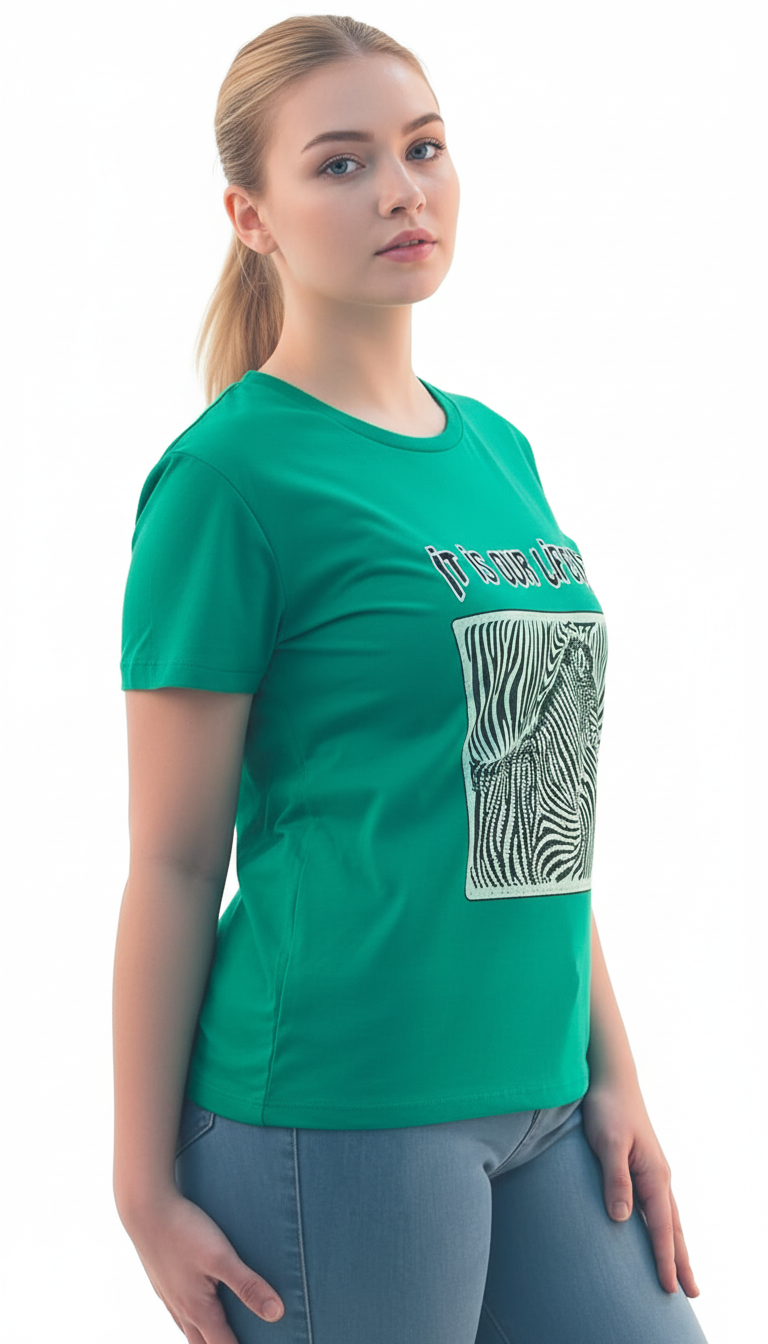 Women's It Is Our Life Quotes with Animal Print Round Neck Short Sleeve T-Shirt - Green