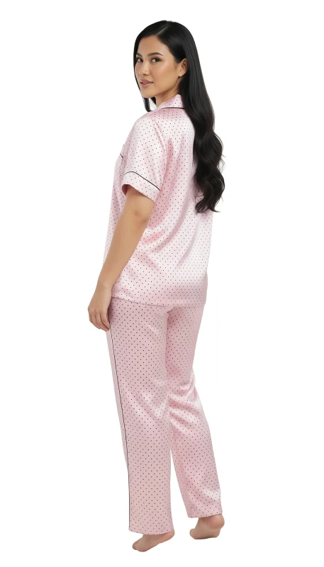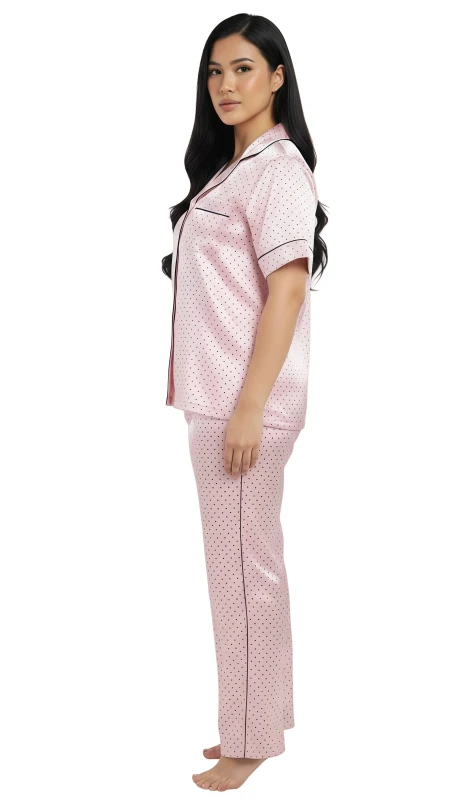 - ladies short sleeve polka dot satin pajama set