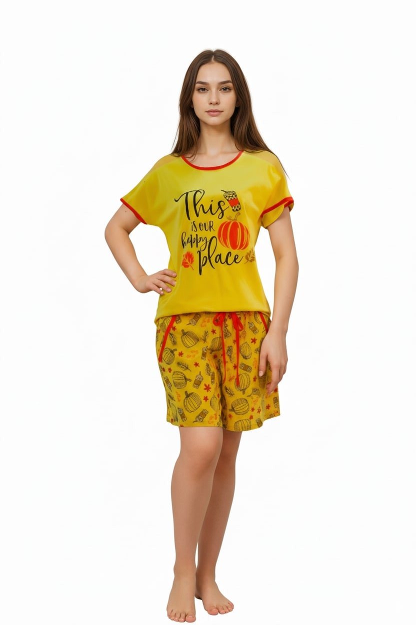 Women's Printed Cotton Lounge Set – "This is Our Happy Place" - Yellow