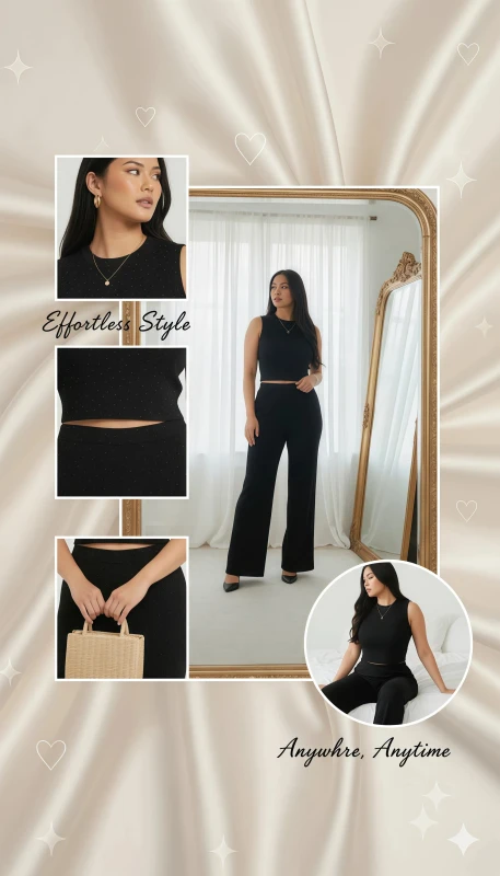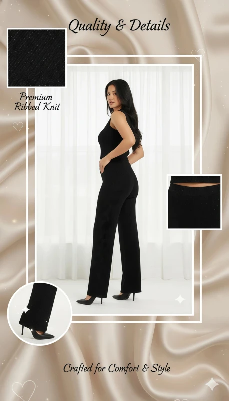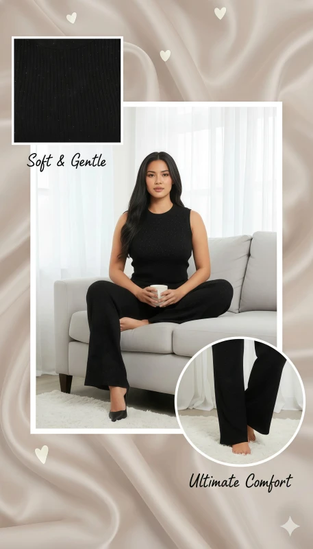 Elevate your casual wardrobe with this chic and comfortable two-piece ribbed lounge set. Designed for both relaxation and style, this set features a sleeveless top and matching wide-leg pants, perfect for creating a cohesive and fashionable look with minimal effort.