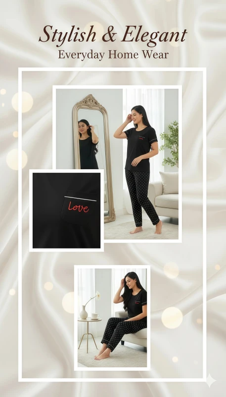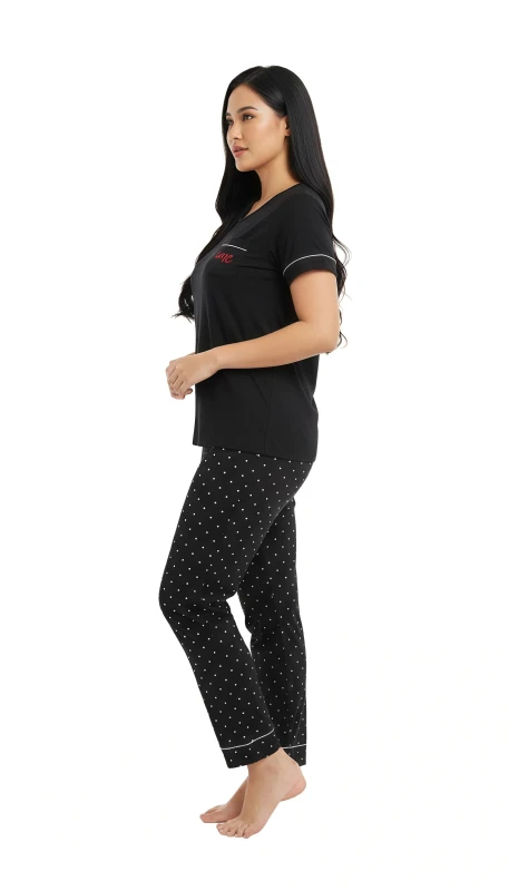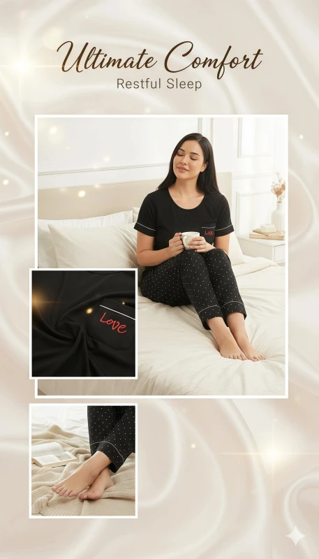 adding a sweet and heartfelt touch. The full-length pajama bottoms are adorned