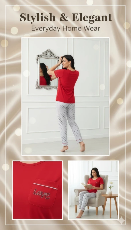 ·         Heartfelt "LOVE" Top: short-sleeved top with a red "LOVE" embroidery on the chest pocket.